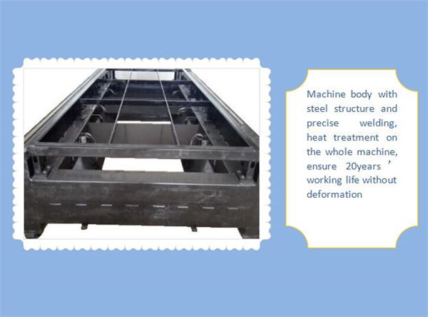 1. எங்கள் இயந்திர உடல் 8 மிமீ எஃகு அமைப்பு, 600 வெப்ப சிகிச்சை, துல்லியமான வெல்டிங், 20 ஆண்டுகள் பயன்பாட்டை சிதைக்காமல் உறுதி செய்ய.